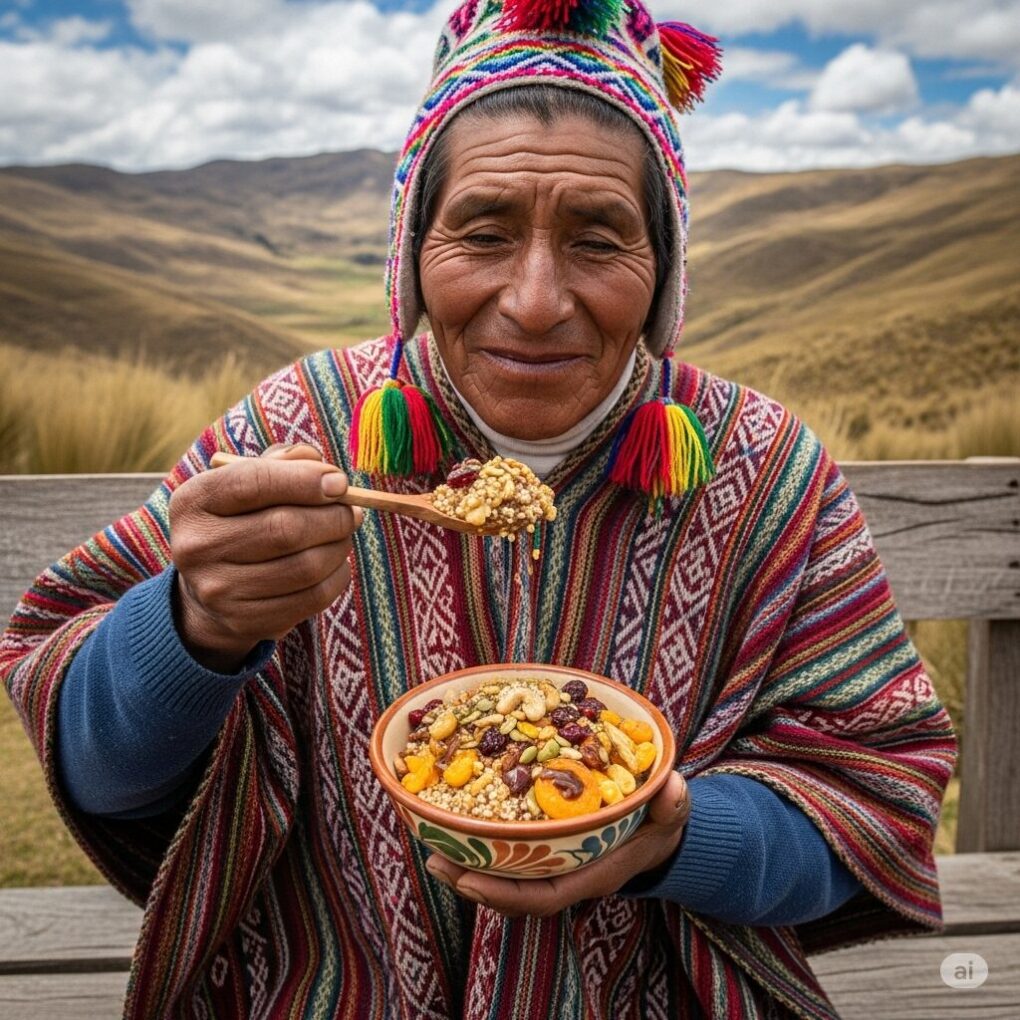 La quinua, considerada la «madre de todos los granos» por los incas, es el ingrediente estrella de este postre. Su sabor suave y su textura granulada se combinan a la perfección con la dulzura de la panela y el toque aromático de la canela. Este dulce no solo es delicioso, sino que también es una poderosa fuente de energía sostenida, ideal para quienes necesitan un impulso para enfrentar el día o recuperarse de una larga caminata por los senderos andinos.